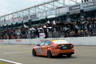 Nürburgring/Rüthen•. Der MSC Bergstadt Rüthen Pilot beendete am vergangenen Wochenende sein erstes 24h Rennen am Nürburgring. Das Wochenende für das Hellboys Racing Team das neben den Stammfahrern der VLN Michael Mönch und Jan von Kiedrowski auf die Unterstützung des Südkoreaners Jang Han Choi vertraute war geprägt von Auf und Abs. Nach dem das Team im ver-gangenen Jahr nach 16 Rennstunden wegen eines Unfalls nach einem Reifenplatzer vorzeitig aus-schied wurde der BMW 325i vor dem Rennen quasi generalüberholt um jegliches technisches Risiko aus zu schließen. Im ersten Qualifing konnte Frisse noch die zweit schnellste Zeit in der Klasse 4 V erzielen. Als er zum Schluss des zweiten Qualifings noch einmal auf eine heiße Runde gehen wollte, verhinderte jedoch ein Reifendefekt eine Zeitverbesserung. Die Konkurrenz konnte sich noch einmal verbessern und somit ging es von Startposition 5 in das Rennen zwei Mal um die Uhr. Das Team hatte beim Vorbeifahren des Autos ein verdächtiges Surren gehört. Somit wurde in der Nacht Donnerstag auf Freitag noch ein neues Getriebe besorgt, welches die Mechaniker am Freitag ver-bauten. „Man muss sich das mal vorstellen, in der Box gibt es keine Hebebühne Werkstatt. Die Jungs liegen unter dem aufgebockten Auto und tauschen das Getriebe innerhalb von drei Stunden, da kann man nur den Hut ziehen.“ erläuterte Frisse. Startfahrer von Kiedrowski konnte sich bereits in den ersten Runden auf die dritte Position vorarbeiten und diese bis zum Ende seines Stints vertei-digen. Als zweites war Frisse an der Reihe. „Wir fahren zwischen 7 und 8 Runden je nach Benzin-verbrauch d.h. ca. 1,5h danach geht es ab an die Box. Riefenwechsel, Scheibe putzen, 60 Liter Sprit rein, ein kurzer check ob alle Flüssigkeitsstände passen und den Fahrer gewechselt nach ca. 2 Minu-ten Standzeit geht das Fahrzeug wider auf die Piste.“ erläutert Frisse. Während seiner ersten 1,5h hinterm Lenkrad konnte Frisse sich auf Position 2 in der Klasse verbessern. Nacheinander spulten alle Fahrer Ihre Runden ab und man lag um 23 Uhr auf einem guten dritten Platz in der Klasse. Dann kam plötzlich Hektik auf in der Box, von Kiedrowski gab über Funk Bescheid, dass es auf Teilen der 25km langen Strecke begonnen hatte zu regnen und er kaum noch etwas sehen könne da die Scheibe Ölverschmiert sei. Er steuerte die Box an und gab die Devise vor, Intermediate Reifen (geschnittene Slicks) drauf zu ziehen, da nur ca. 60% der Strecke nass sei. Somit musste Frisse nun nicht nur bei völliger Dunkelheit sondern auch noch im Regen mit bis zu 245 km/h durch die Eifel „fliegen“. Da die zahlreichen Fans die das ganze Wochenende an der Nordschleife campen in der Nacht nicht frieren wollen, machen sie sich natürlich ein Feuer. Was bei trockenen Verhältnissen kein Problem ist wird im Regen schon kritischer, da die Feuer stark qualmen, ist es an manchen Streckenabschnitten so als ob man in eine Nebelwand hineinfährt. „Diese schwierigen Verhältnisse führen dazu, dass wir auch mit unserem kleinen Auto einige stärkere Konkurrenten á la Porsche und Co überhohlen können,“ erzählt Frisse mit einem Grinsen auf dem Gesicht. Jedoch genau dies wur-de Ihm zum Verhängnis. Er setzte sich in einer links Kurve innen neben einen rund 120 PS stärkeren Konkurrenten um diesen zu überhohlen. Jedoch muss dieser so mit sich selbst beschäftigt gewesen seien, dass er Frisse übersah. Auch er lenkte ein und traf Frisse am rechten Hinterrad. Dies ist eigentlich nicht möglich ärgerte er sich, wenn er mich am Hinterrad trifft bin ich schon so weit an Ihm vorbei, dass er mich gesehen haben muss. Das Rad stand komplett schief und somit musste ich zur Reparatur an die Box kommen. Die Boxenmannschaft hat einen super Job gemacht, jedoch ha-ben wir mehr als eine Stunde verloren. Eine Podest Platzierung war somit in weite Ferne gerückt, jedoch waren immer noch 16 Stunden zu Fahren. Aufgegeben wird beim 24 h Rennen nicht, das erste Ziel ist es diesen Marathon zu beenden. Nach der Reparatur ging das Team mit 7 Runden Rückstand und als letzter in der Klasse wieder zurück auf die Strecke. Durch konstant schnelle Runden konnte sich das Team noch auf den 6 Platz in der Klasse und den 63 Gesamtrang von mehr als 150 Startern verbessern. „In erster Linie bin ich einfach nur glücklich dieses unbeschreibliche Rennen beendet zu haben, klar hatten wir auf einen Podest Platz spekuliert, jedoch kann sich jeder der zu Ende gefahren hat als kleiner Sieger fühlen.“ freut sich Oliver Frisse. Nun gilt es den Focus auf die restlichen 8 Läufe der VLN Langstreckenmeisterschaft zu setzen um hier noch den einen oder anderen Pokal einzufahren.